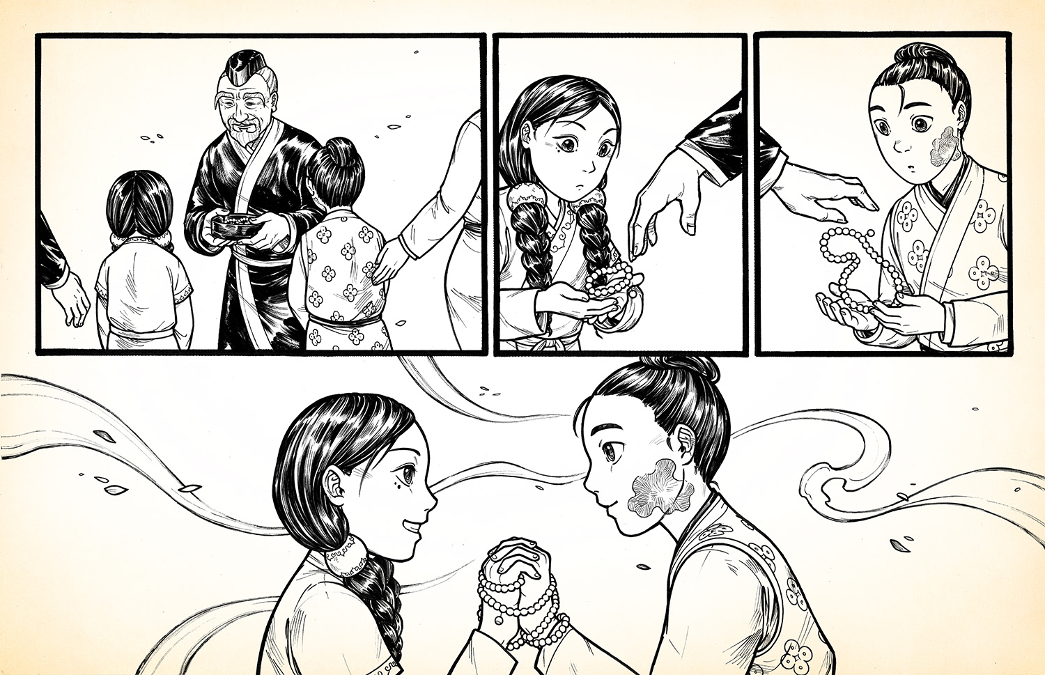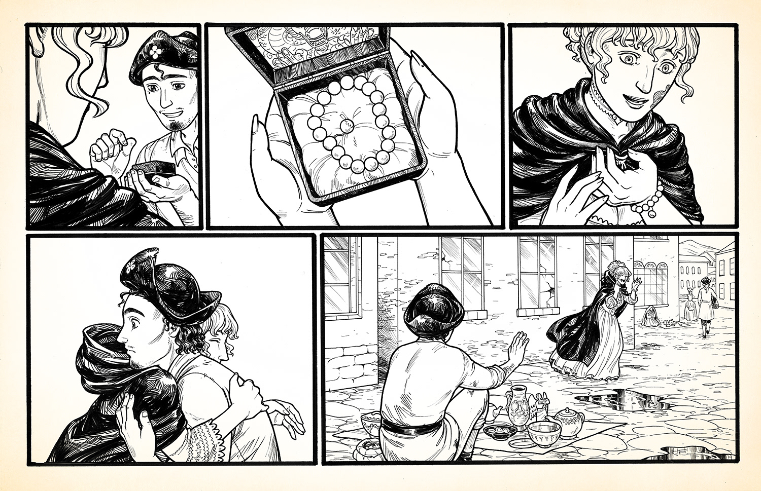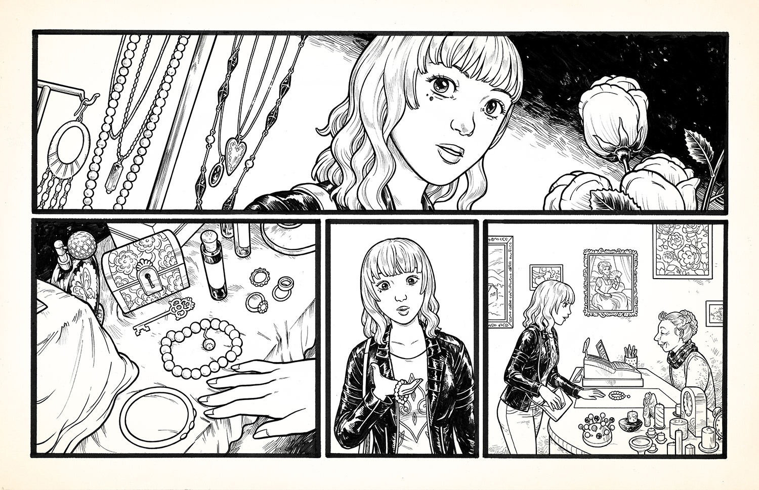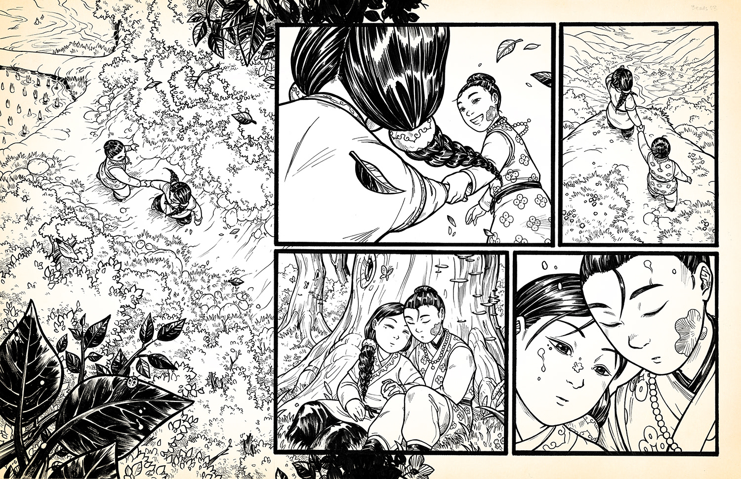 "Beads" is a silent comic that I made in early 2016. It's about two people who work against the odds of multiple lifetimes in order to be together. Copies of the full comic may be found in my stores.