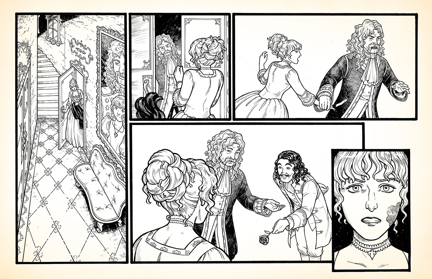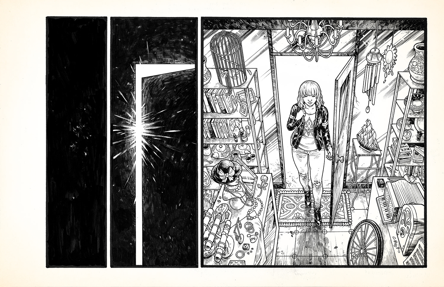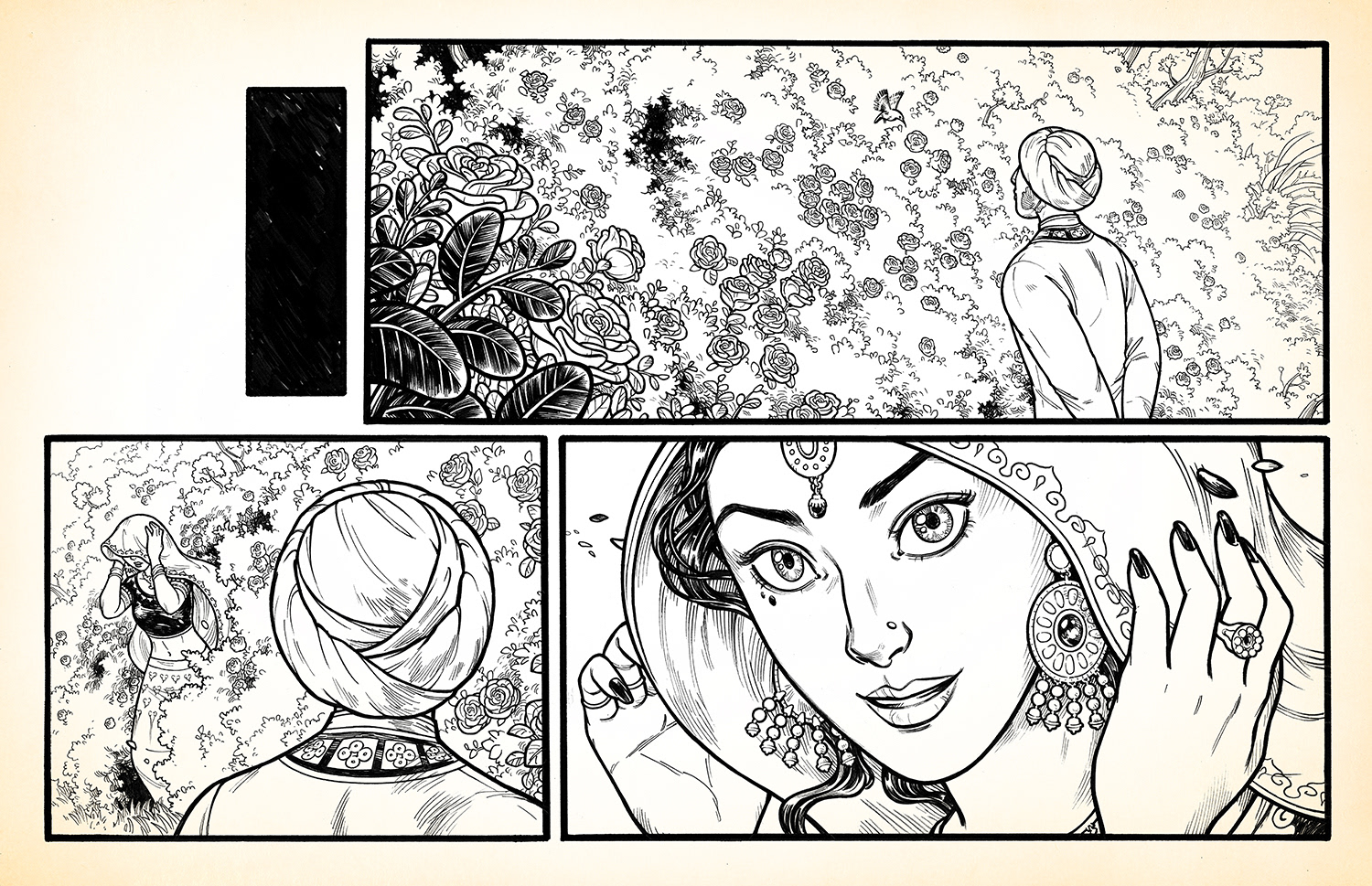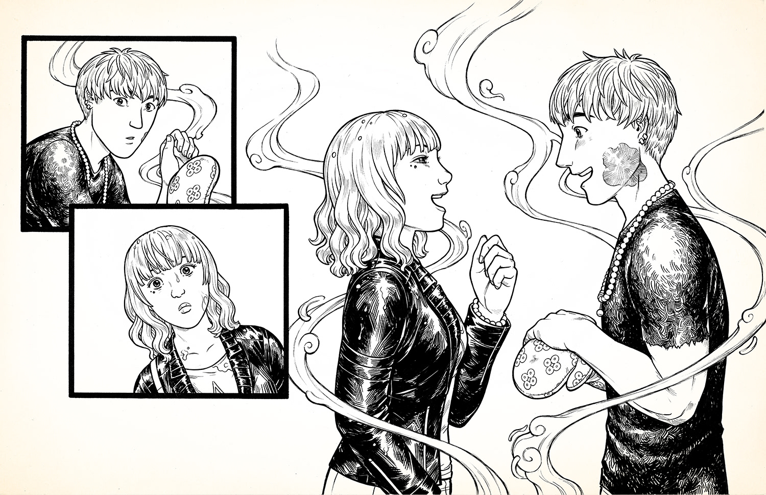 "Beads" is a silent comic that I made in early 2016. It's about two people who work against the odds of multiple lifetimes in order to be together. Copies of the full comic may be found in my stores.