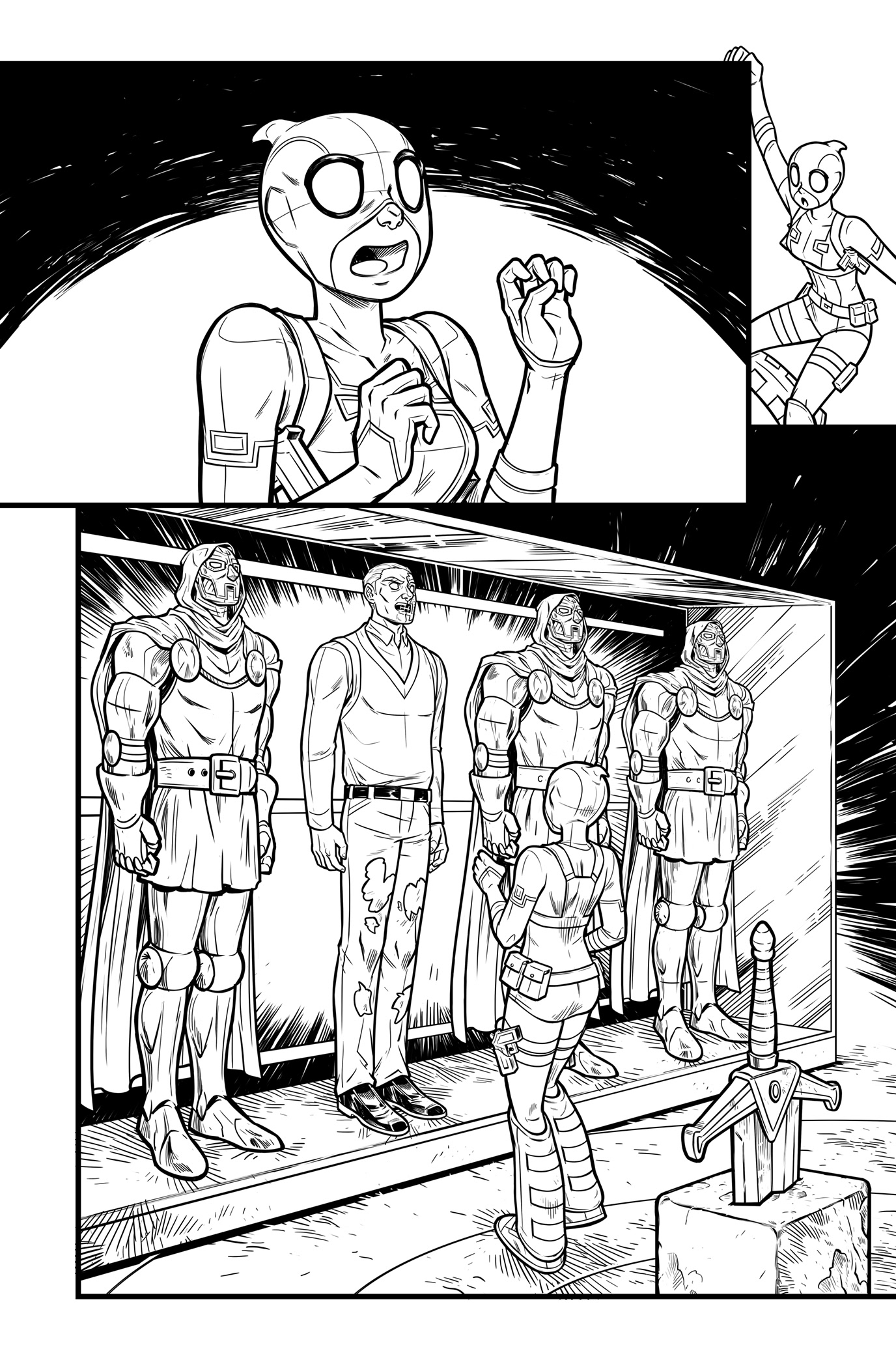 Select pages that I penciled and inked on the "Gwenpool" series for Marvel Comics. Click on images to view larger.