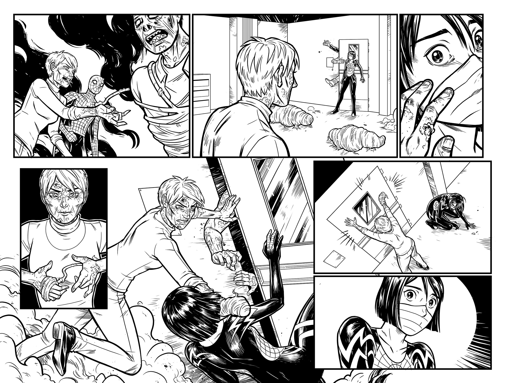 Select pages that I penciled and inked on Marvel's "Silk" series. Click on images to view in Lightbox.